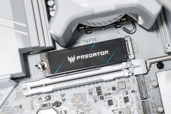 目前Intel与AMD平台均已适配兼容PCIe5.0固态硬盘,PCIe5.0理论测试带宽相较于PCIe4.0直接翻倍,对生产力与游戏的提升可谓是立竿见影的,市面上的PCIe5.0固态硬盘主要分为DRAM-Based(配备独立DRAM缓存芯片)和DRAM-Less(无独立DRAM缓存芯片)两种方案,在读写性能表现与价格方面均有所差异,前者通常以高端旗舰的形象出现,不过在价格上往往不占优势,若你是追求极致的读写性能,那么配备独立DRAM缓存芯片的固态硬盘必然是优先选择,宏碁掠夺者GM9000 PCIe5.0固态硬盘就是其中之一,标称顺序读取写入速度均可达14000MB/s与13000MB/s,接下来对其深度测试性能表现。